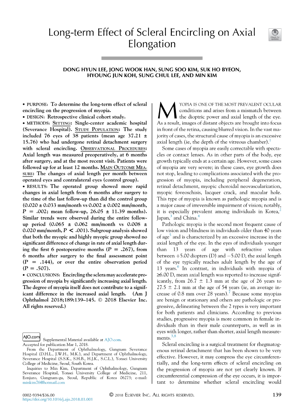 Lee DH, Han JW, Kim SS, Byeon SH, Koh HJ, Lee SC, Kim M