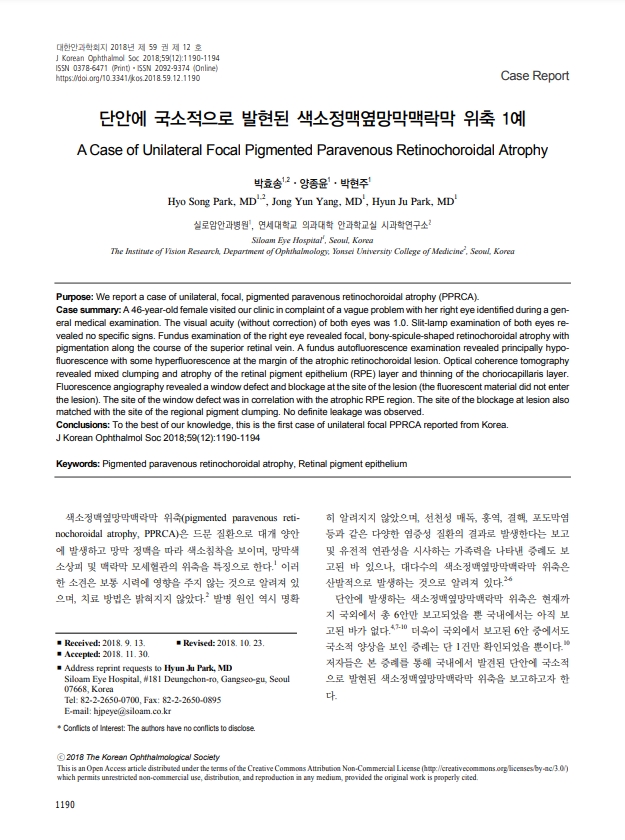 A Case of Unilateral Focal Pigmented Paravenous Retinochoroidal Atrophy